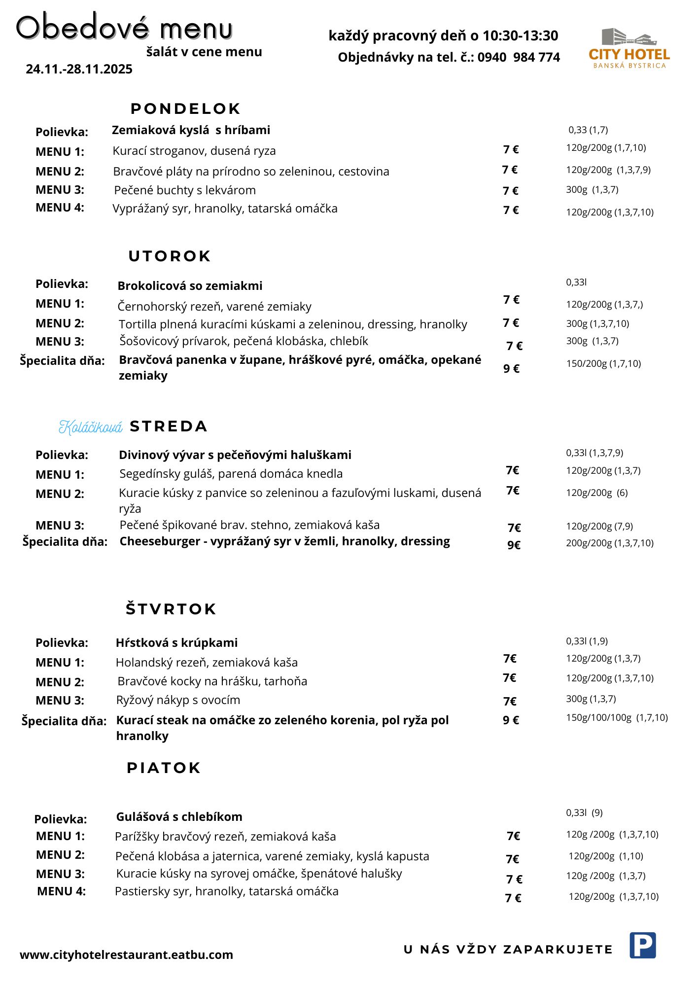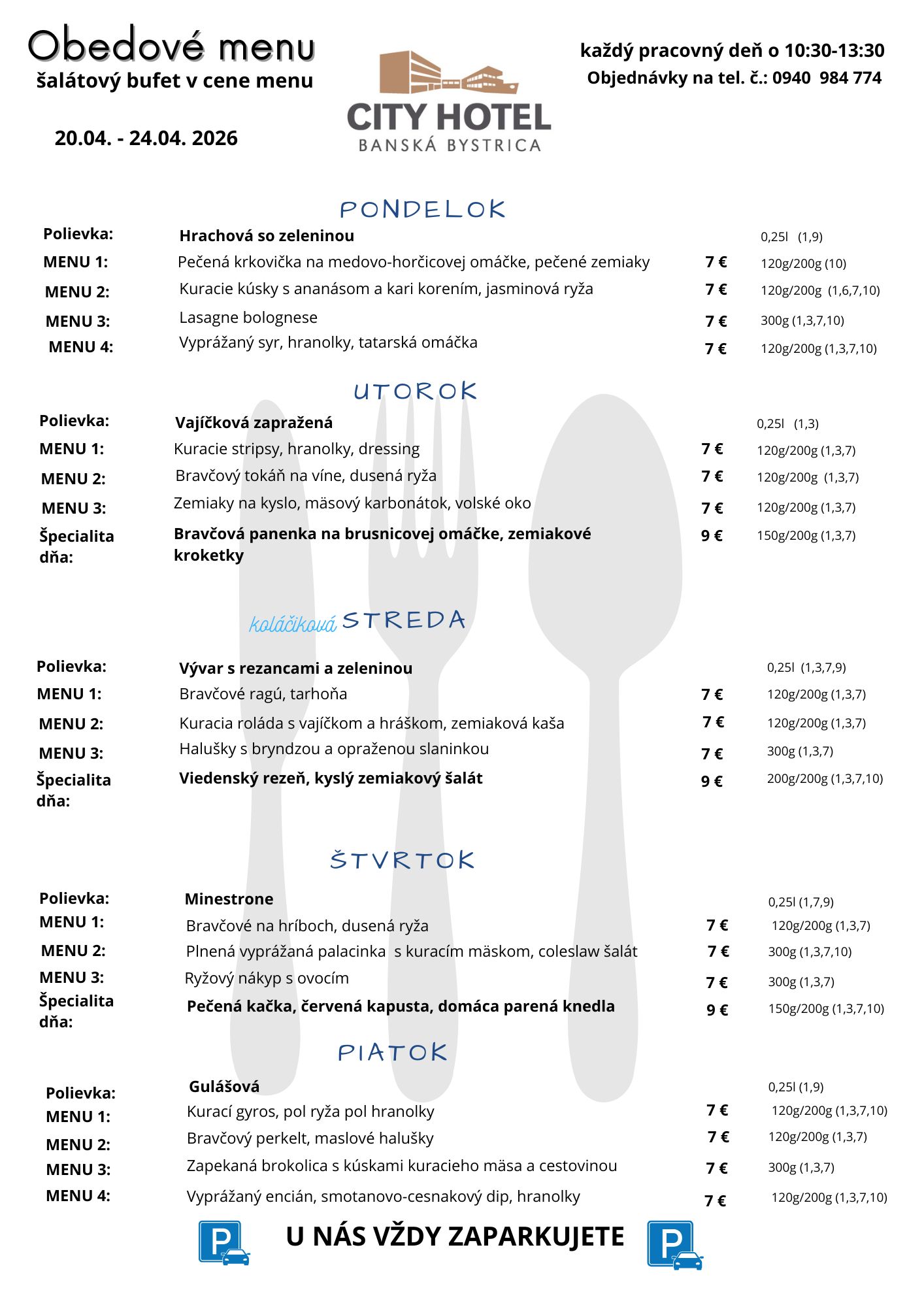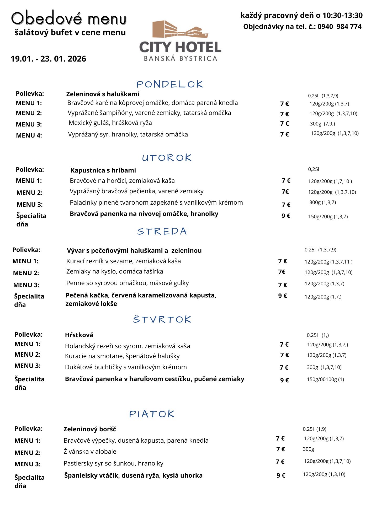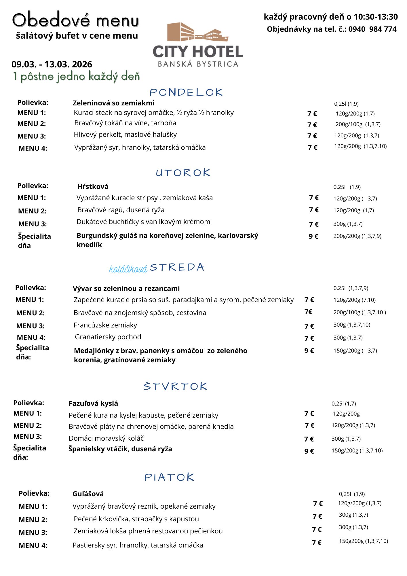Obedové menu v čase od 10:30 do 13:00